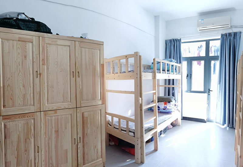 2.整潔的生活環(huán)境。學(xué)生公寓武賁閣與陽彩軒擁有現(xiàn)代化的生活設(shè)施。每間宿舍住4-6人,擁有雙套衛(wèi)浴系統(tǒng),配備獨(dú)立洗衣機(jī)、空調(diào)。采用全實(shí)木家具床柜,健康無污染。聘請專業(yè)生活老師,科學(xué)管理日常起居。